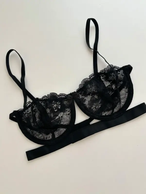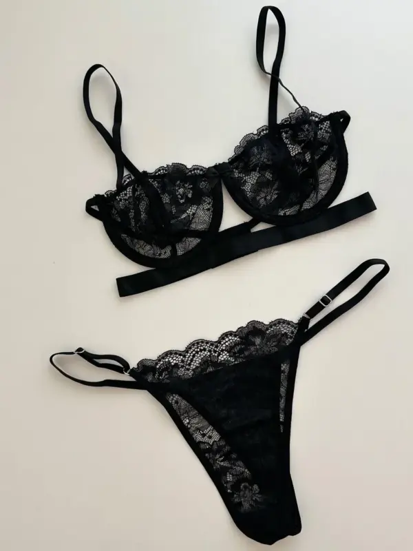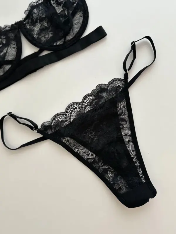 Dvodjelni lingerie set sa nerastezljivom čipkom, s podesivim naramenicama na gornjem dijelu i podesivom širinom u struku. Upute za održavanje: pranje na 30°C ili ručno, ne sušiti u sušilici, ne peglati.