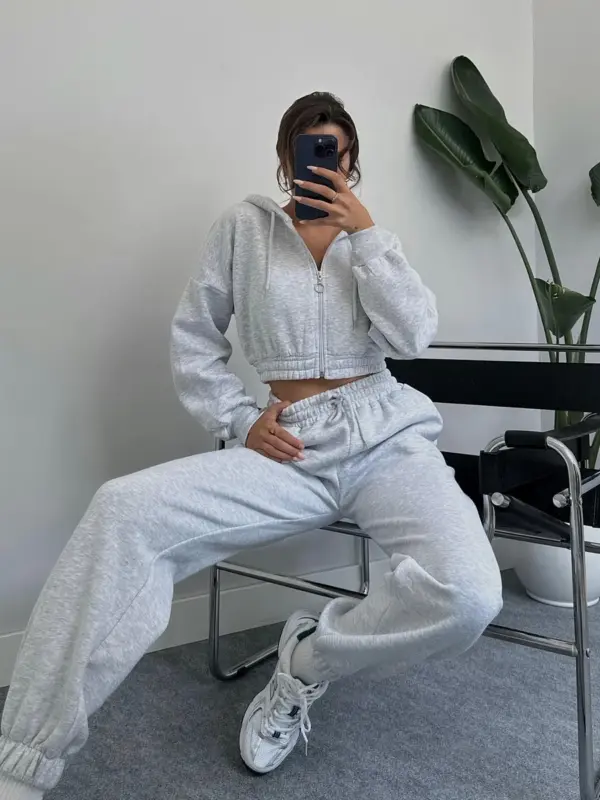 Savršeno udobna, mekana, i topla dvodjelna trenerka, idealna za hladnije dane. Gornji dio crop model, i na kopčanje.