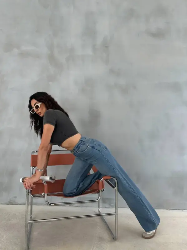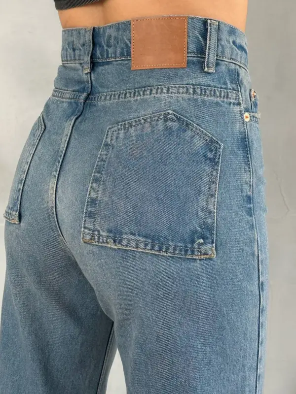 Jednostavne i trendi basic farmerice širokog kroja, savršene za svakodnevne kombinacije. Visoki struk pruža udobnost i ističe figuru, dok neobrađeni donji porub daje moderan, ležeran izgled. Klasični džepovi sprijeda i pozadi dodaju praktičnost ovom bezvremenskom modelu.