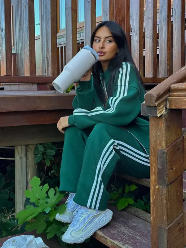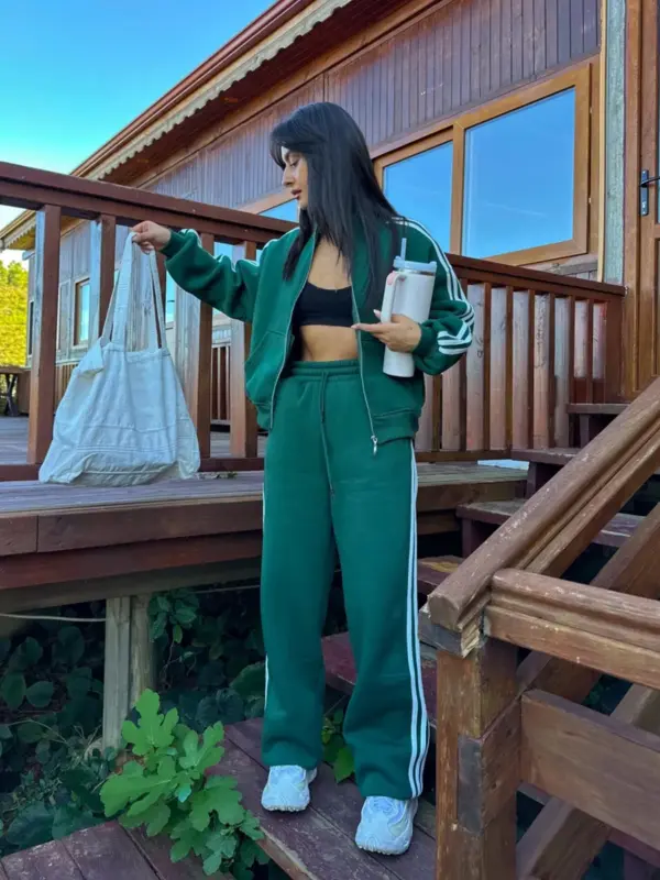 Ova dvodjelna trenerka nudi savršenu kombinaciju udobnosti, topline i stila – idealan izbor za hladne dane. S basic dizajnom i detaljem pruge, ovaj set možete nositi zajedno ili svaki komad zasebno, čineći ga svestranim za različite kombinacije.