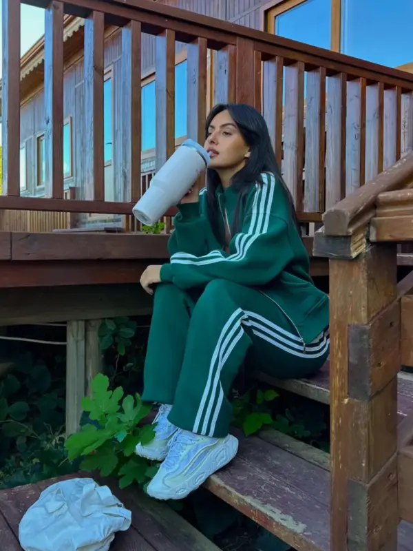 Gornji dio je blago kraći i širi, dok donji dio ima podesivu lastiku pri dnu, omogućavajući nošenje sa širim nogavicama ili suženo pri gležnjevima. Ovo pruža dodatnu slobodu kretanja i maksimalnu udobnost. Unutrašnji termo sloj osigurava dodatnu toplinu, čineći ovu trenerku praktičnim izborom za svakodnevne aktivnosti u hladnijim vremenskim uslovima.