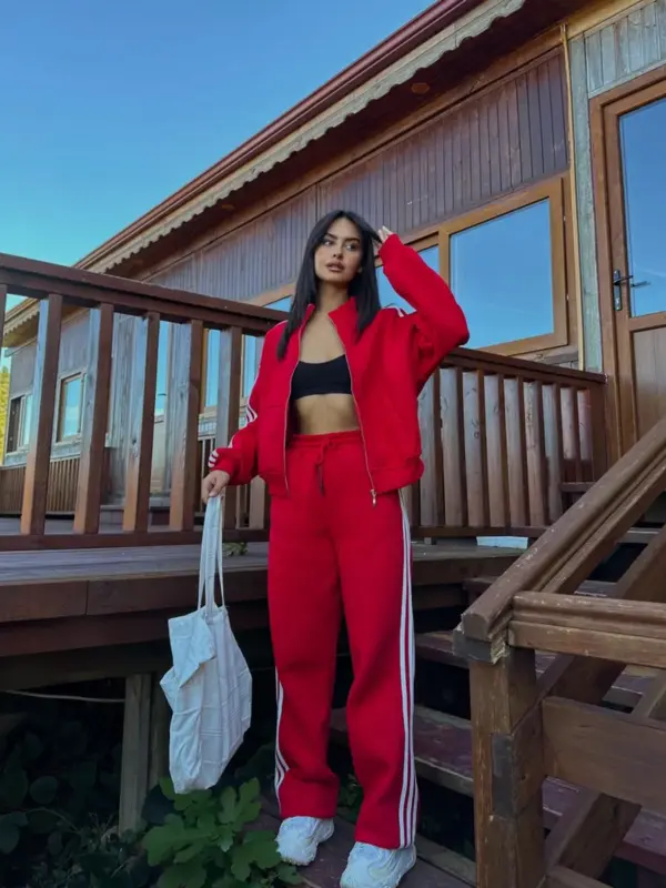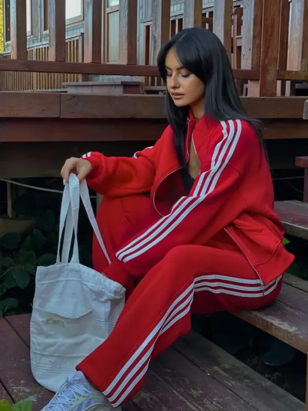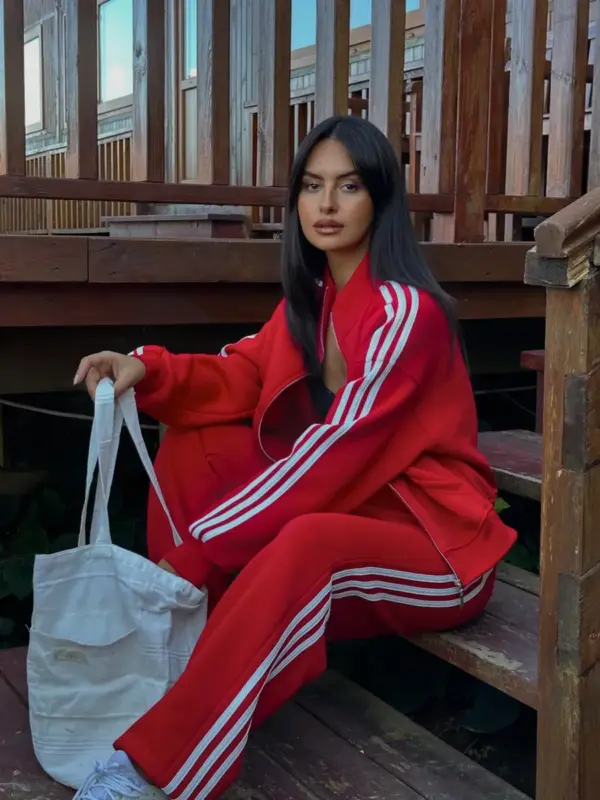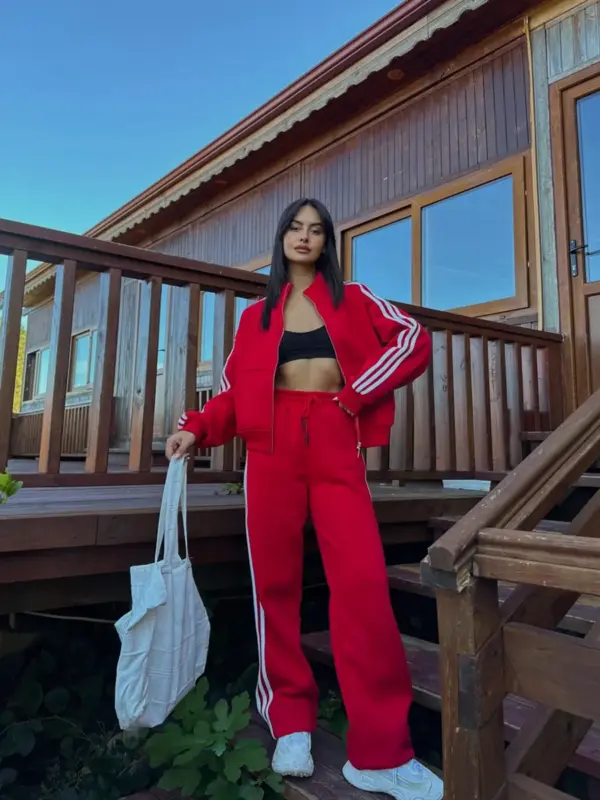 Ova dvodjelna trenerka nudi savršenu kombinaciju udobnosti, topline i stila – idealan izbor za hladne dane. S basic dizajnom i detaljem pruge, ovaj set možete nositi zajedno ili svaki komad zasebno, čineći ga svestranim za različite kombinacije.