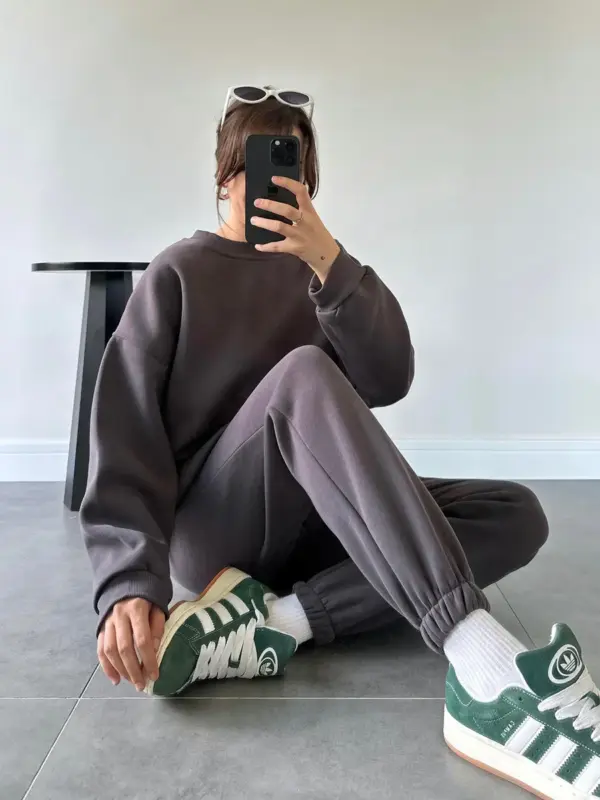 Gornji dio dolazi s klasičnim krojem koji osigurava moderan, ležeran izgled, dok donji dio ima elastičnu traku u struku i na nogavicama, pružajući savršeno pristajanje bez osjećaja stezanja. Ovaj svestrani dizajn čini trenerku odličnim izborom za svakodnevne aktivnosti, opuštanje kod kuće ili ležerne izlaske. Uživajte u toplini, udobnosti i modernom izgledu uz trenerku koja se lako uklapa u svaki stil.