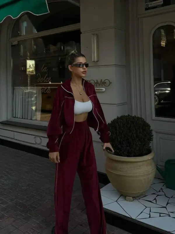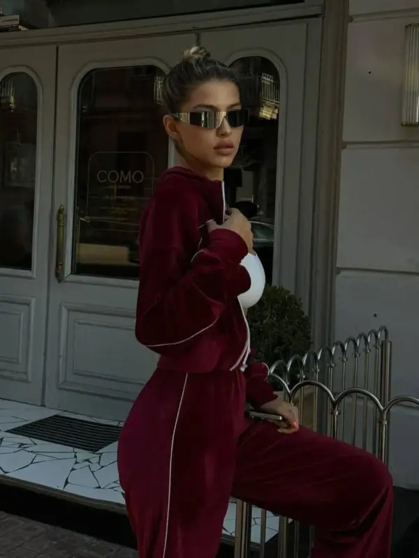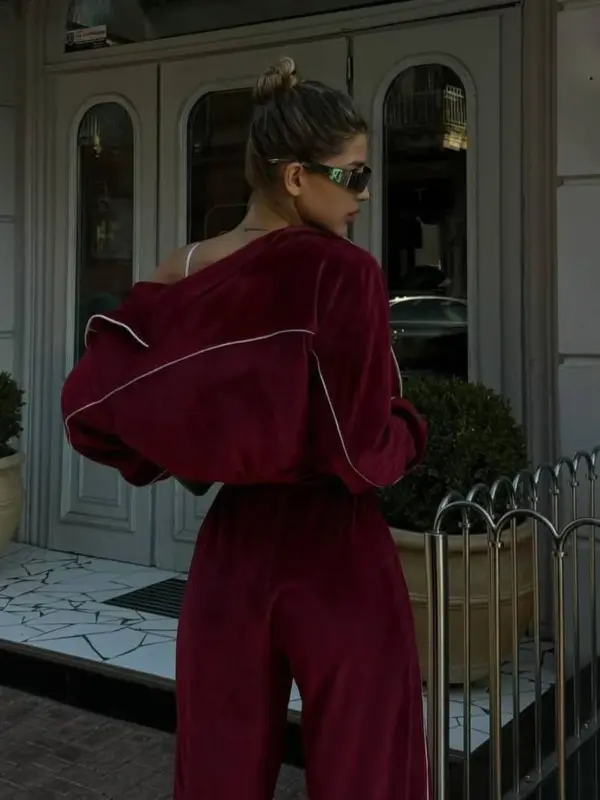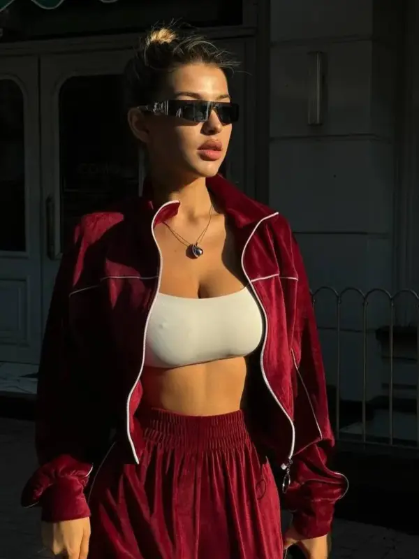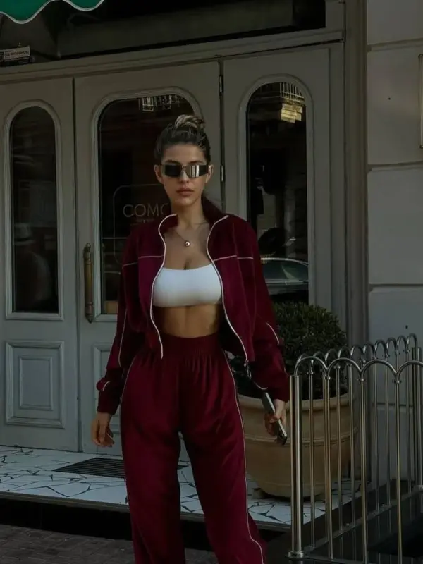 Dvodjelna plišana trenerka koji kombinuje udobnost i trendi izgled. Gornji dio je crop kroja, savršen za moderne dnevne kombinacije, dok donji dio ima elastičnu gumu u struku i duge nogavice, idealne i za visoke devojke. Izrađen od izuzetno mekanog pliša, ovaj set pruža maksimalnu udobnost i luksuzan osećaj.