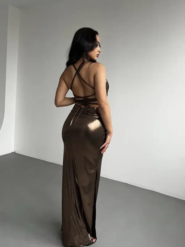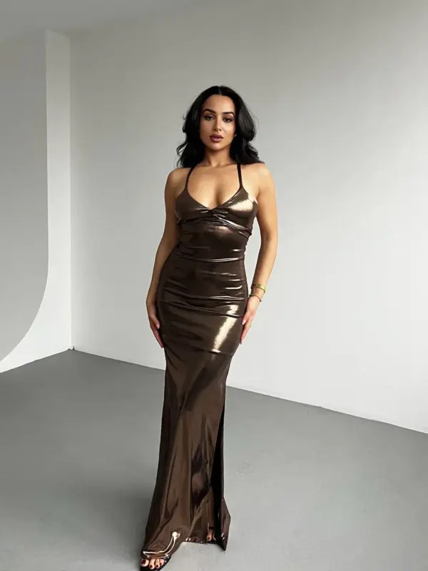 Maxi haljina Verona – metalik smeđa