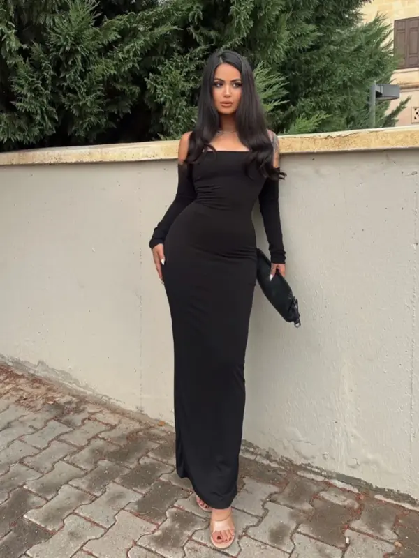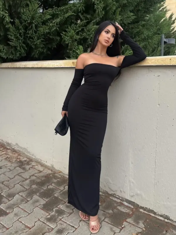 Midi haljina s elastinom elegantno ističe figuru prateći liniju tijela. Dizajnirana sa spuštenim ramenima i dubokim izrezom na leđima, ova haljina unosi dozu smjelosti i senzualnosti u vaš stil. Idealan izbor za opuštene, ali upečatljive modne kombinacije, pruža udobnost i sofisticiran izgled za večernje izlaske ili posebne prilike.