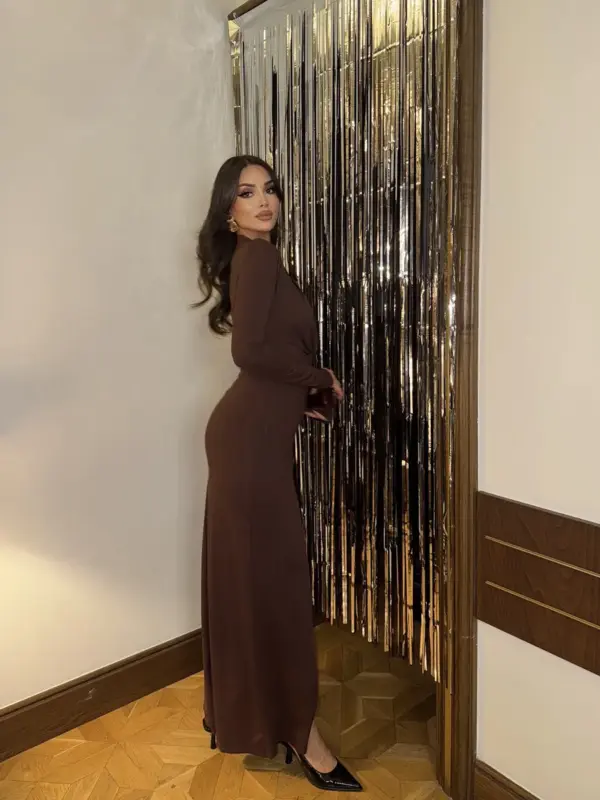 Uska rastezljiva maxi haljina dizajnirana da istakne ženstvenu siluetu. Naglašeni duboki dekolte dodaje sofisticiran izgled, dok spužvice na ramenima pružaju strukturu i eleganciju. Idealna je za večernje izlaske i posebne prilike. Podstavljena do ispod grudi.