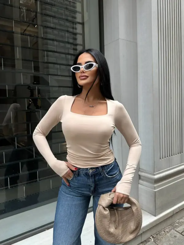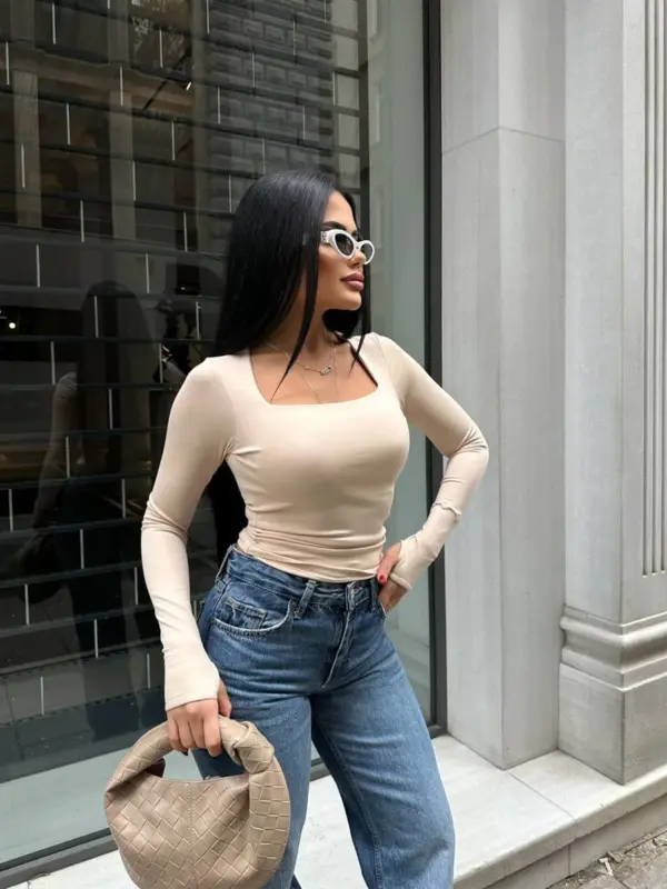 Basic majica s kockastim okovratnikom i prorezima za prste
