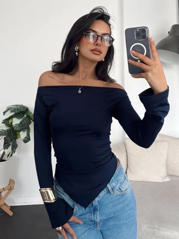 Jednostavna i elegantna basic majica sa spuštenim ramenima koja donosi kombinaciju udobnosti i modernog izgleda. Produženi asimetrični porub dodaje zanimljiv detalj, čineći je savršenim izborom za svakodnevne i casual modne kombinacije.
