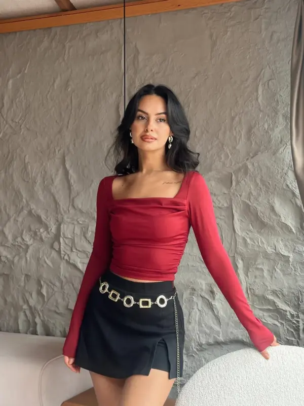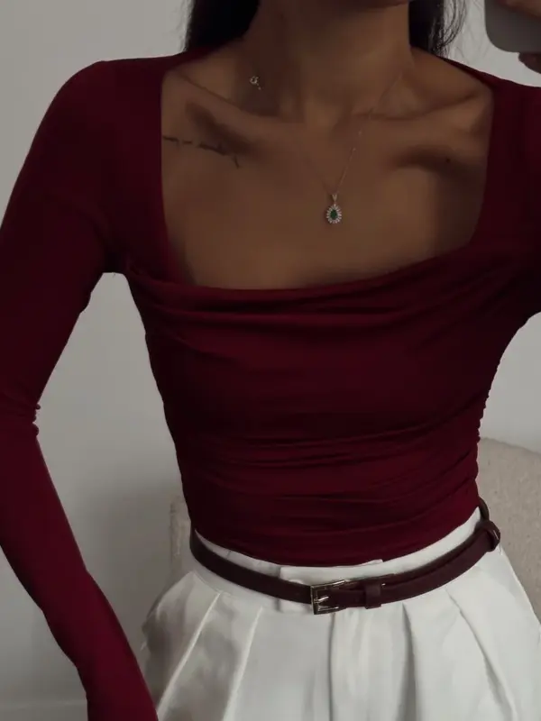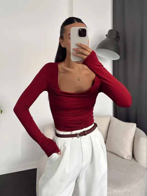 Basic majica sa nabranoim prednjim dijelom i otvorenijim dekolteom