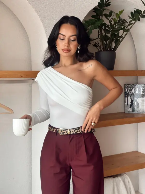 Unesite eleganciju u svoj stil s ovim asimetričnim bodijem koji naglašava vaš sofisticirani ukus!