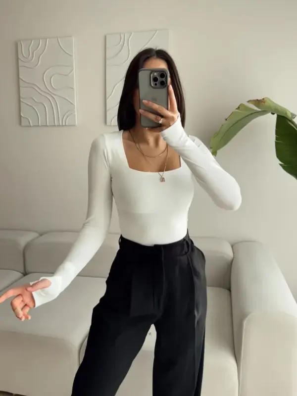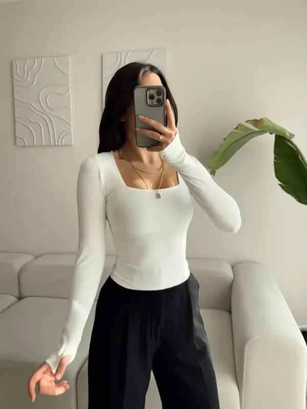 Ova rastezljiva basic crop majica s modernim kvadratnim izrezom savršen je dodatak za svakodnevne kombinacije. Jednostavnog dizajna, lako se uklapa s različitim stilovima – od ležernih basic outfita do slojevitih kombinacija. Zahvaljujući rastezljivom materijalu, majica pruža udobnost i odlično prianja uz tijelo, naglašavajući siluetu.