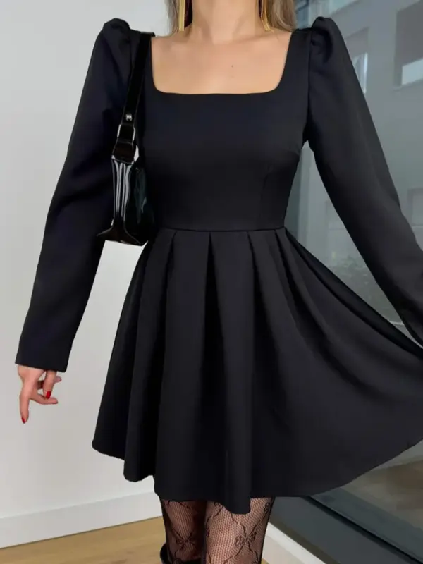 Ova ženstvena mini haljina savršeno kombinuje jednostavnost i eleganciju. Kockasti okovratnik dodaje sofisticiran izgled, dok presjek u struku ističe figuru i naglašava ženstvenu siluetu. Blago se širi prema dnu, što joj daje lepršavost i lakoću pokreta. Podstava do ispod grudi osigurava udobnost i bolji fit, dok ziper pozadi omogućava lako oblačenje.