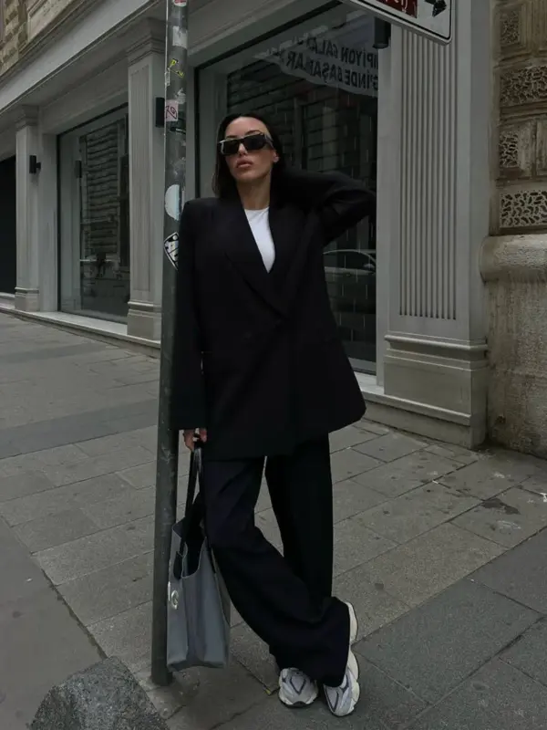 ✔ Sako: Oversize kroj, spužvice na ramenima