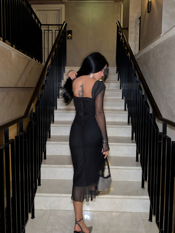 Midi haljina od tila sa volanima i elastinom. Haljina je podstavljena i ima zipper na leđima za lakše oblačenje. Manji model – preporučujemo uzeti veći broj od broja koji inače nosite.