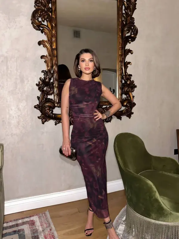 Midi haljina s podstavom i slojem tila preko, elegantnog dizajna koji naglašava ženstvenu siluetu. Nabranost u struku osigurava figuralno prilagođavanje, dok rastezljivost materijala pruža udobnost.Ova haljina kombinira sofisticiranost i moderni izgled.