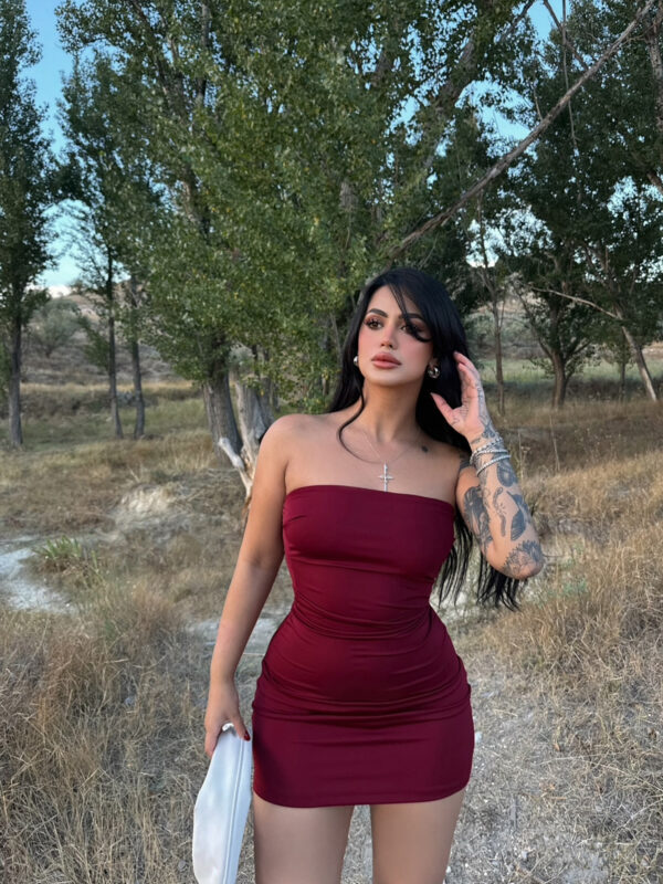 Ova jednostavna i zavodljiva mini haljina izrađena je od elastičnog materijala koji savršeno prijanja uz tijelo. Bez naramenica, minimalističkog dizajna, idealna je za efektan i smjel izgled.