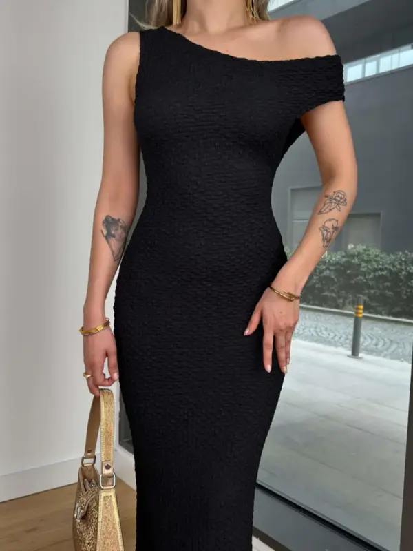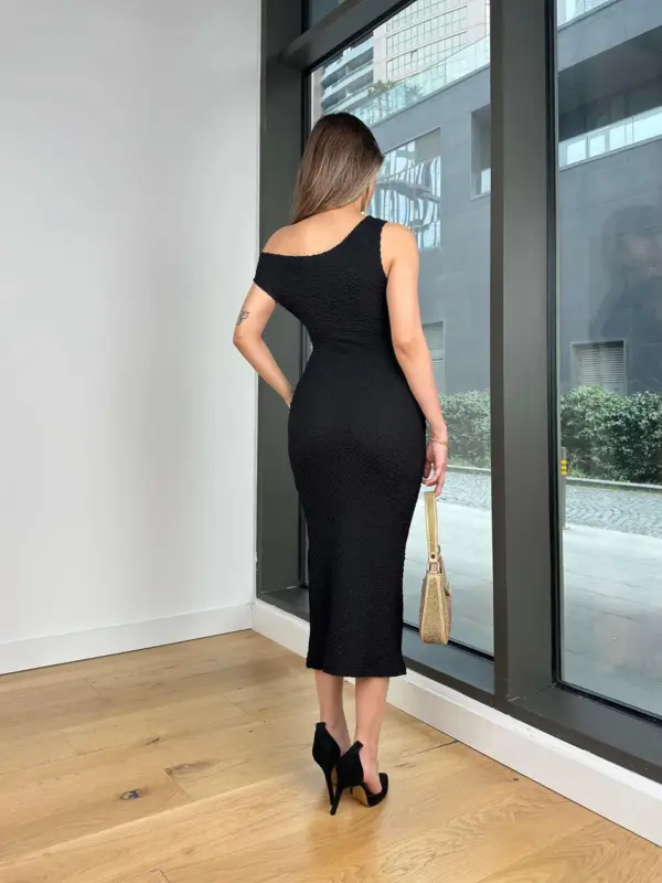 Asimetrična uska midi haljina – elegancija s teksturom ✨