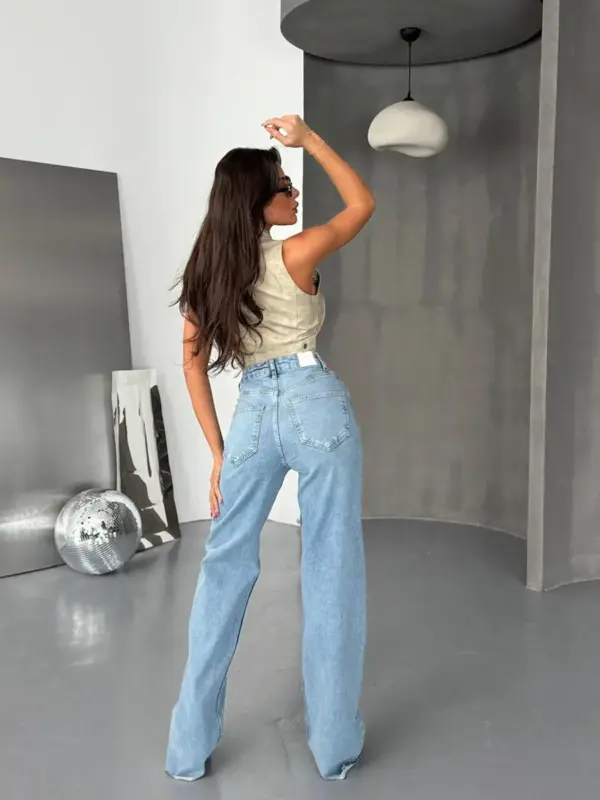 Jednostavne i trendi basic farmerice širokog kroja, savršene za svakodnevne kombinacije. Visoki struk pruža udobnost i ističe figuru, dok detalj sa kosim kopčanjem daje moderan, ležeran izgled. Klasični džepovi sprijeda i pozadi dodaju praktičnost ovom bezvremenskom modelu.