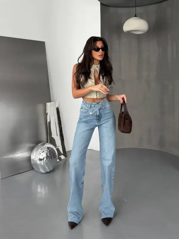 Basic farmerice široka nogavica sa kosim kopčanjem