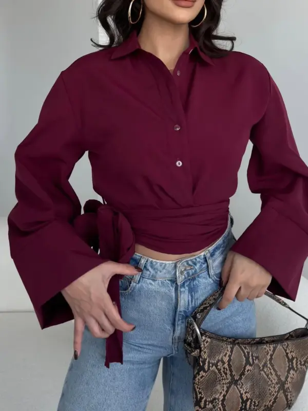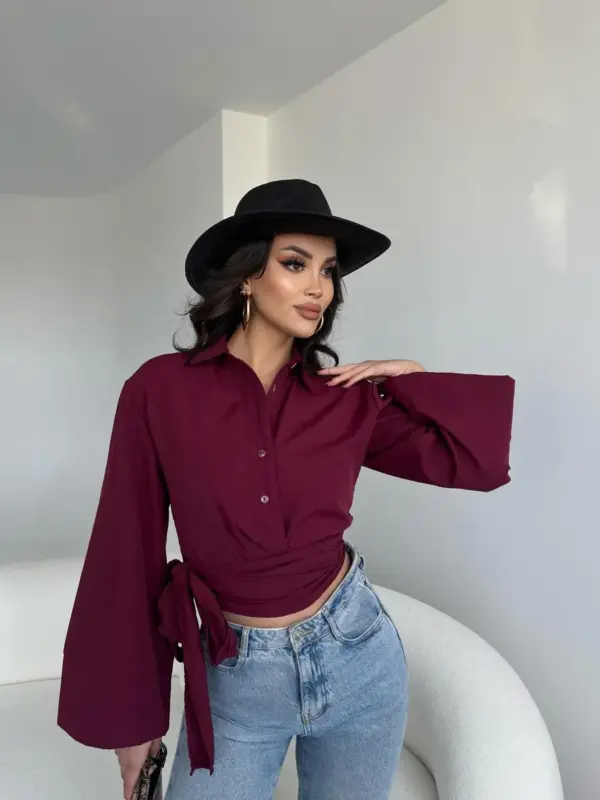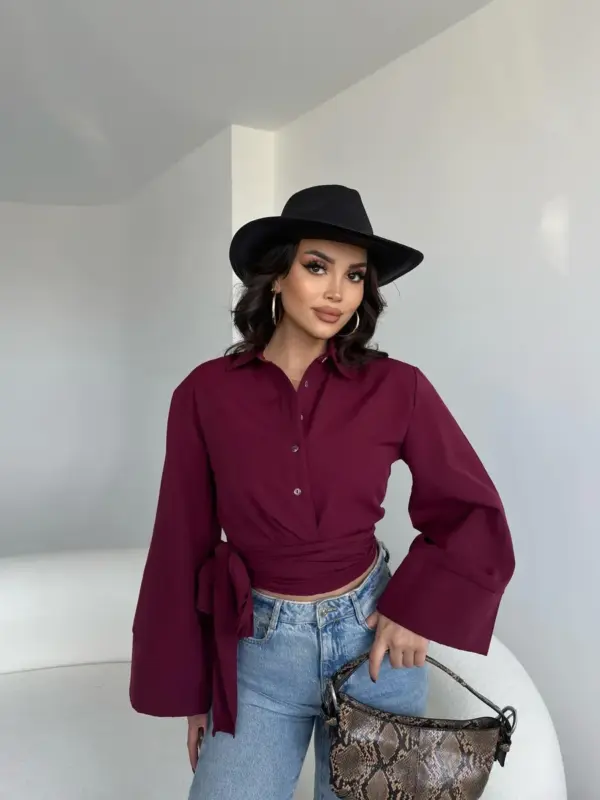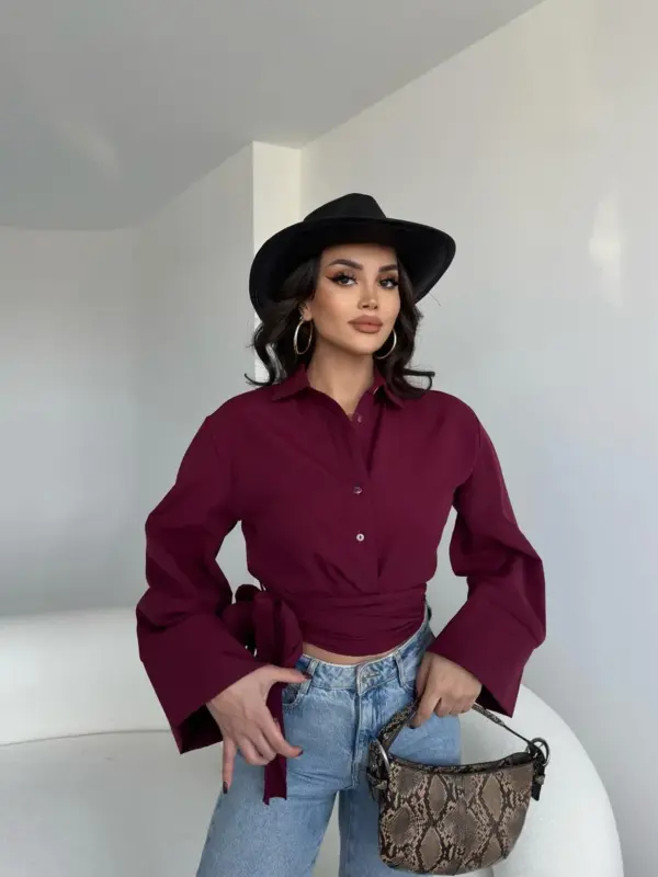 Ova cropped košulja savršen je spoj klasike i modernog stila! Zvonasti rukavi daju joj sofisticiran izgled, dok vezanje pri dnu naglašava struk i omogućava prilagođavanje outfitu. Idealna za kombinovanje s visokim strukom – od farmerica do suknji!