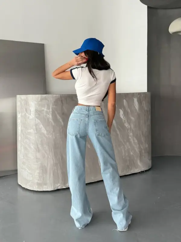 Jednostavne i trendi basic farmerice širokih nogavica, savršene za svakodnevne kombinacije. Srednji struk pruža udobnost i ističe figuru, dok basic kroj omogućava da se kombinuju uz razne komade.