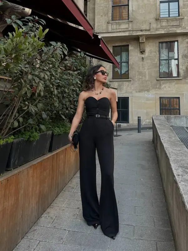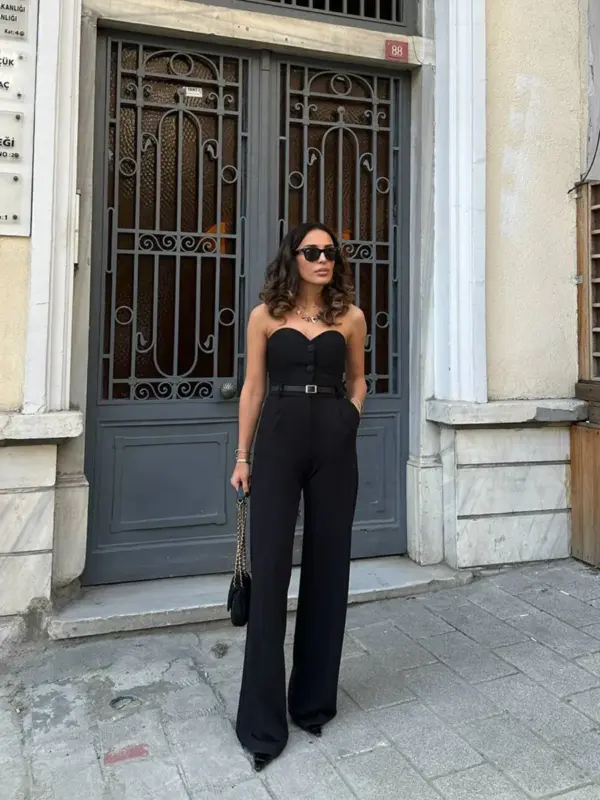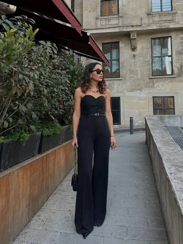Palazzo hlače visokog struka sa širokim nogavicama koje se blago šire prema dnu, pružajući elegantan i sofisticiran izgled. Savršene za formalne i poslovne kombinacije.