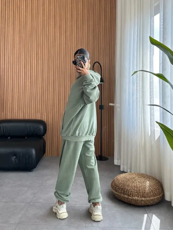 Oversized trenerka savršen je izbor za sve koji žele maksimalnu udobnost. Ovaj komplet, s gornjim i donjim dijelom šireg kroja, gumom u struku i po dnu nogavica, nudi opušten izgled i neograničenu slobodu pokreta. Idealan je komad za opuštanje kod kuće, šetnje ili sportske aktivnosti.