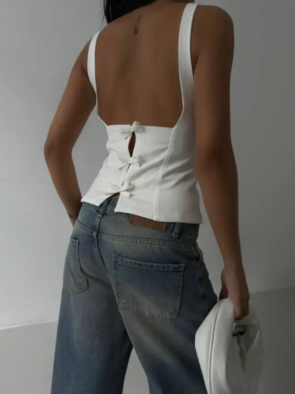 Ukrojeni top s otvorenim leđima i detaljima mašni – ženstvenost u svakom detalju