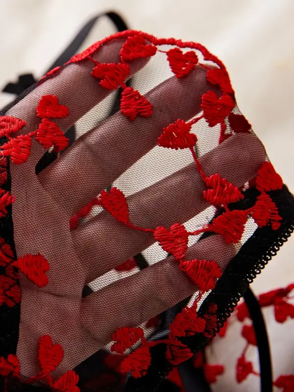 Dvodjelni lingerie set u kombinaciji mrežice i veza s naramenicama na vezanje u gornjem dijelu i podesivom širinom u struku isto u vidu vezanja na donjem dijelu. Upute za održavanje: pranje na 30°C ili ručno, ne sušiti u sušilici, ne peglati.