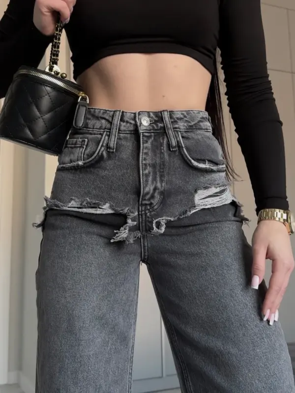 Ako voliš opušten stil koji privlači pažnju, ove farmerice širokog kroja s izderanim detaljima su pravi izbor! Visoki struk ističe figuru i pruža udobnost, dok distressed efekti unose dozu urbanog šarma i modernog street style izraza.