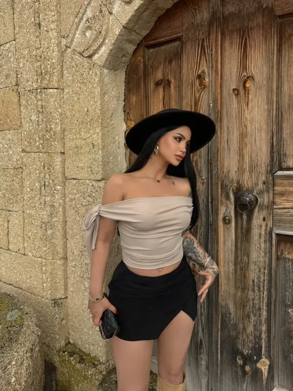 Ovaj top s efektnim ramenima s jedne strane na vezanje, a s druge strane kratki rukav, donosi romantičan i zavodljiv stil koji ćeš obožavati nositi! Mekan, rastezljiv materijal nježno prati liniju tijela, dok spuštena ramena i mašna na rukavu daje posebnu dozu šarma. Nosiv u elegantnim i casual varijantama – lako se uklapa u svaki ljetni outfit!