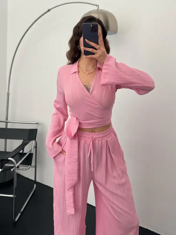 Dvodjelni set – elegantna opuštenost s preklopom i širokim nogavicama 🌿
