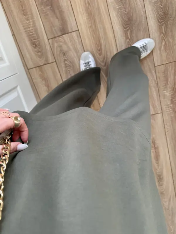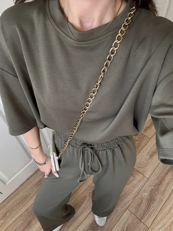 Ovaj zeleni komplet je savršen spoj udobnosti, elegancije i svakodnevne praktičnosti. Krojen je tako da daje osjećaj lakoće, ali i urednog izgleda – idealan za dan pun obaveza ili spontano druženje. Boja je predivna maslinasto-zelena, veoma zahvalna za kombinovanje i savršena za sve tenove.