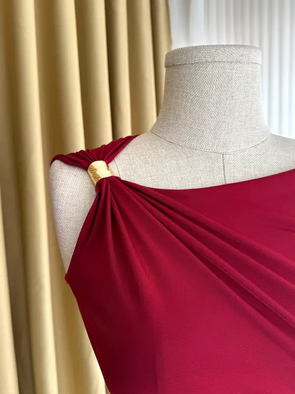 🔸 Kroj: asimetrični s jednim rukavom i zlatnim metalnim detaljem