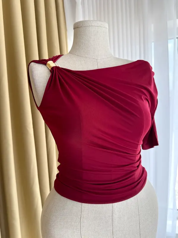 Elegancija nikada nije bila jednostavnija – ova asimetrična majica s detaljem zlatnog prstena na ramenu idealan je izbor kad želiš izgledati profinjeno, a osjećati se udobno. Napravljena od rastezljive, mekane tkanine koja lijepo prati liniju tijela, s drapiranim naborima koji vizualno stanjuju figuru. Dužina je savršena za uvući u visoki struk ili nositi preko traperica i suknji.