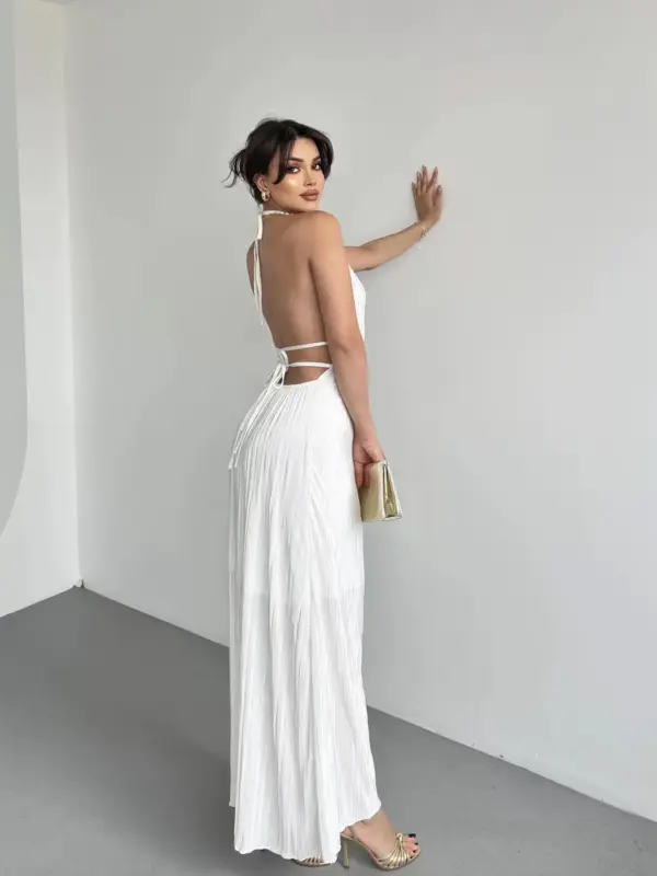 ✨ Plisirana maxi haljina s otvorenim leđima – elegancija u pokretu! ✨