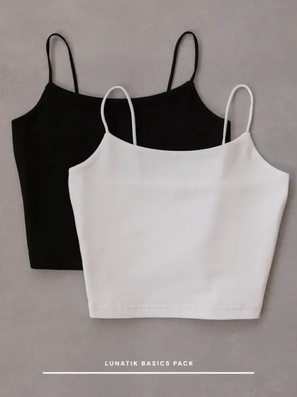 Bezvremenski, udobni i savršeno praktični – ovaj paket sadrži dva osnovna topa koje ćeš nositi iznova i iznova. Jedan u klasičnoj crnoj, drugi u svježoj bijeloj boji, sa tankim naramenicama i ravnim izrezom koji lijepo pristaje uz svaki tip građe. Prednji dio je diskretno podstavljen radi veće udobnosti i sigurnosti, dok blago rastezljivi pamuk pruža osjećaj slobode i mekoće.
