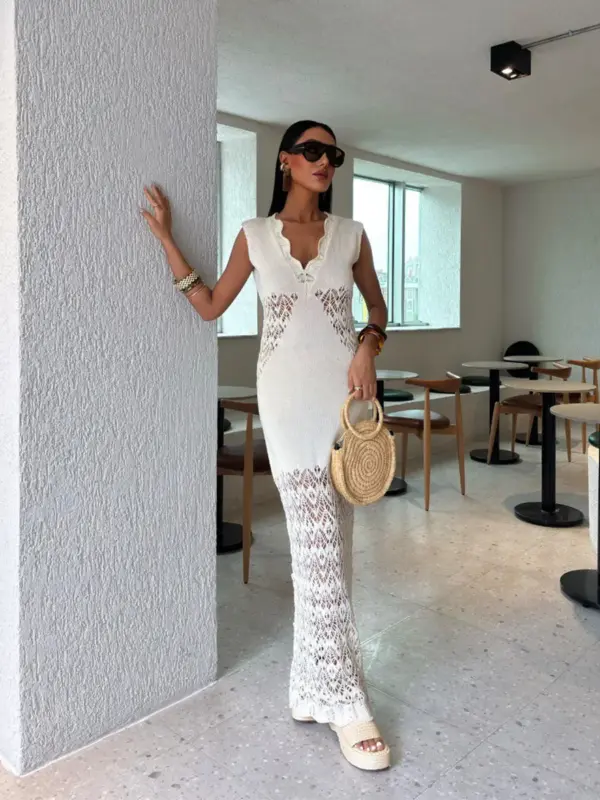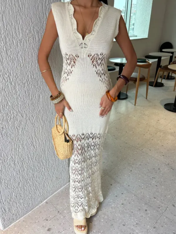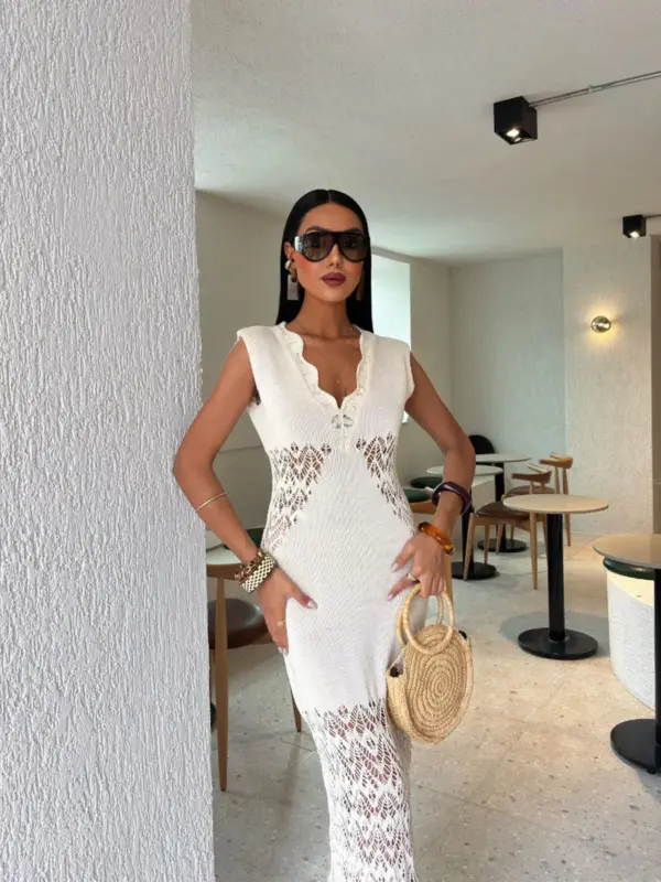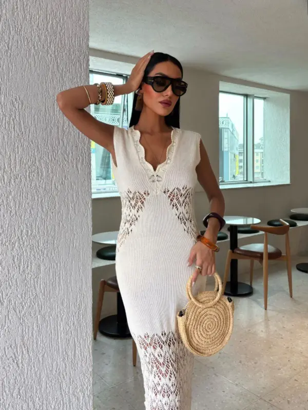 Maxi pletena haljina Carsa – cream