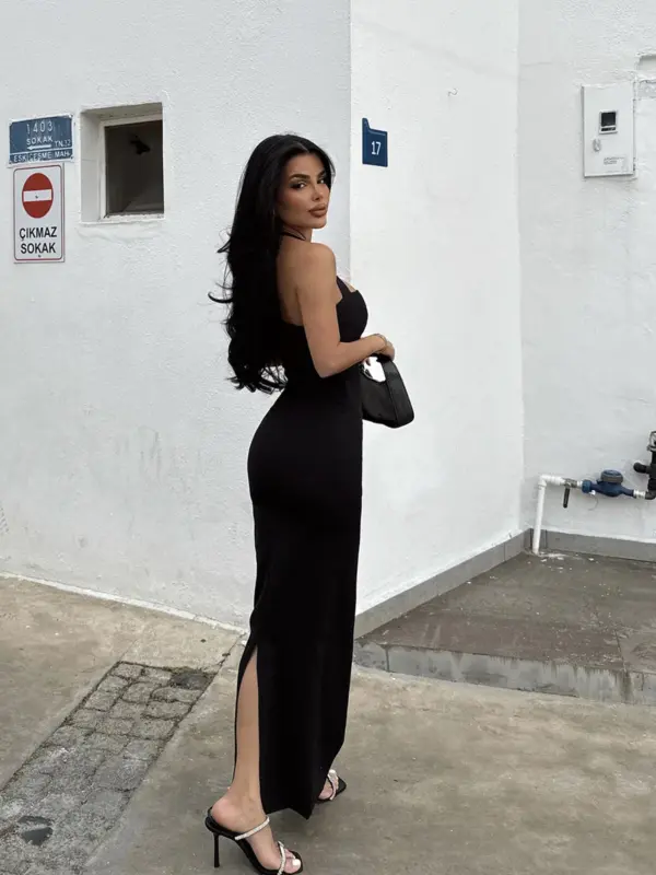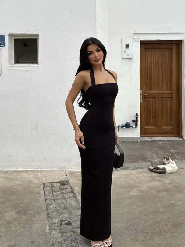 Ova senzacionalna midi haljina savršen je izbor za svaku priliku gdje želite ostaviti snažan dojam! Klasična crna boja i elegantni kroj naglašavaju vašu siluetu, dok otvorena leđa dodaju dozu neodoljivosti.