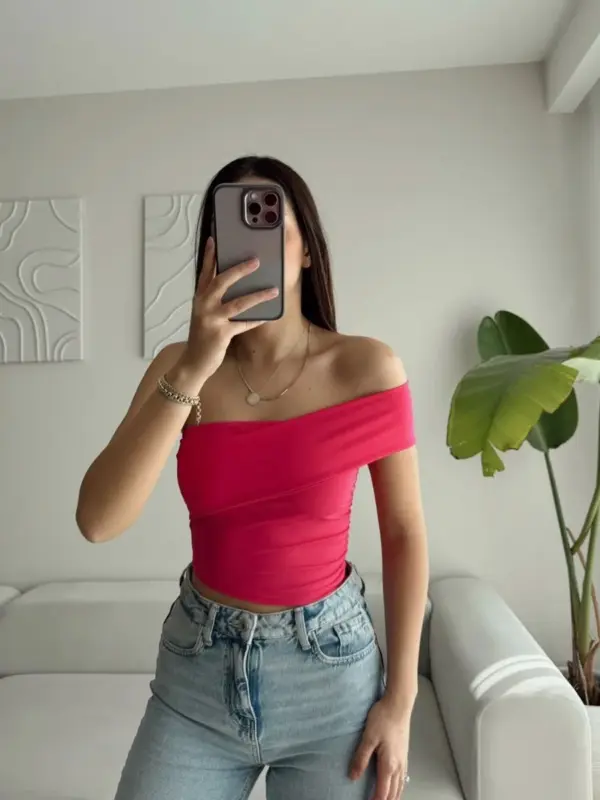 Istaknite svoj stil s ovim asimetričnim topom na jedno rame, koji donosi savršen spoj elegancije i udobnosti. Nabori u predjelu struka vizuelno oblikuju figuru i naglašavaju siluetu, dok mekani rastezljivi materijal osigurava udobnost i prilagodljivost tijelu. Idealno za večernje izlaske, casual kombinacije ili slojevito stilizovanje.