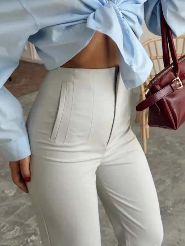 🔹 Kroj: Hlače visokog struka, ravne nogavice