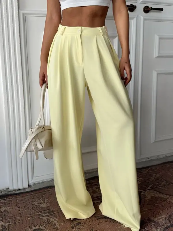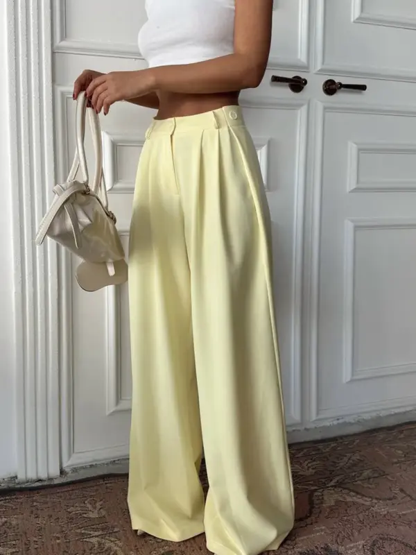 Unesite stil u svoju garderobu s ovim predivnim hlačama širokih nogavica! Visoki struk i lepršavi kroj čine ih izuzetno modernim i udobnim. Široke nogavice pružaju slobodu pokreta i stvaraju elegantnu siluetu.