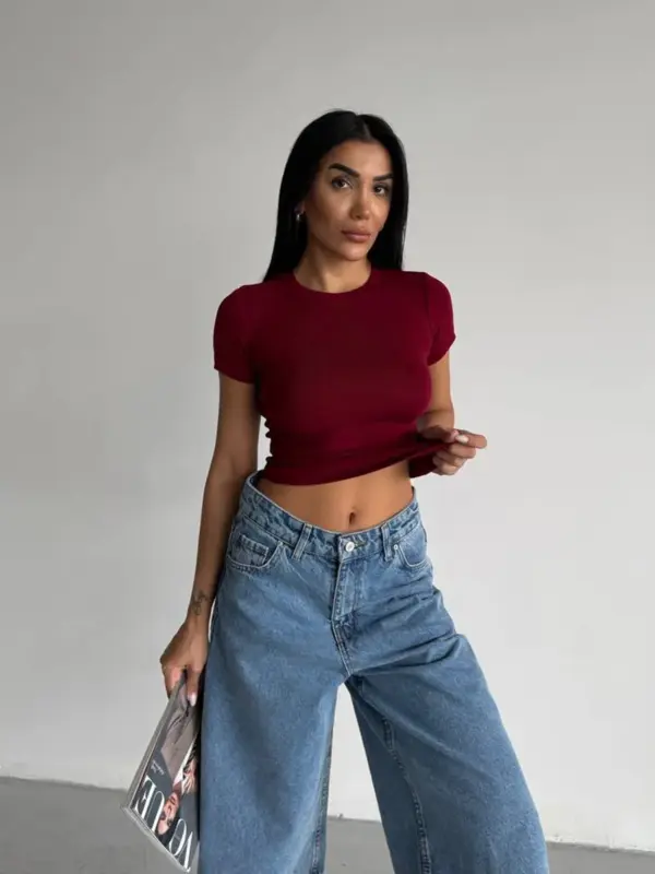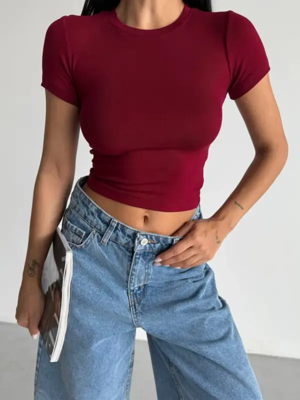 🔹 Kroj: Majica kratkih rukava, klasičan kroj, crop model