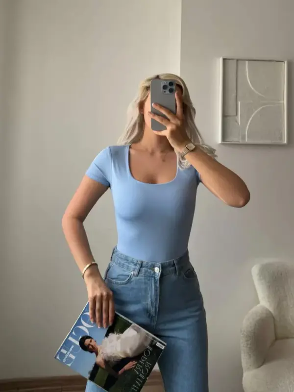 Elastični body s kopčanjem na drikere, savršen za udobno pristajanje uz tijelo. Zahvaljujući jednostavnom dizajnu, lako se kombinuje uz različite stilove i idealan je za slojevito oblačenje.