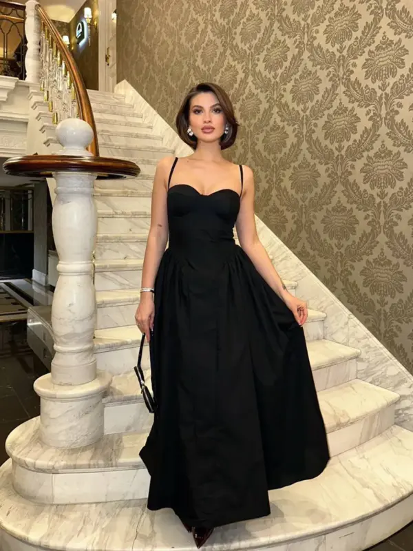 Zablistajte u ovoj elegantnoj midi haljini koja kombinira sofisticiranost i dašak drame! Kroj s korzet detaljem na gornjem dijelu lijepo oblikuje figuru i pruža podršku, dok puna suknja stvara raskošan i lepršav izgled. Haljina ima tanke, podesive bretele za savršeno pristajanje.