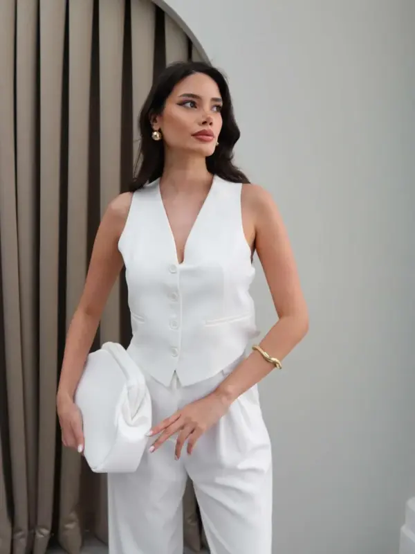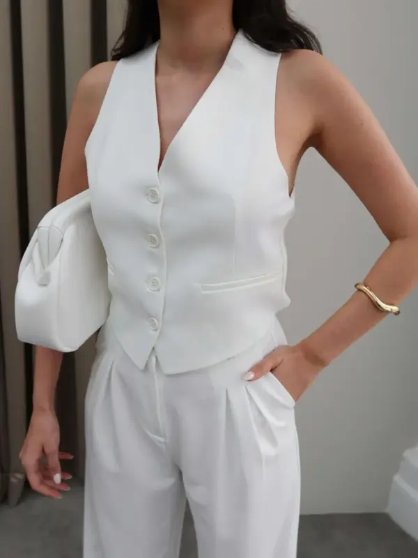 Izrađen od kvalitetnog materijala, ovaj prsluk je idealan za poslovne prilike ili casual kombinacije. Nosite ga samostalno ili preko basic topova i košulja. Lako se kombinuje s hlačama i suknjama visokog struka.