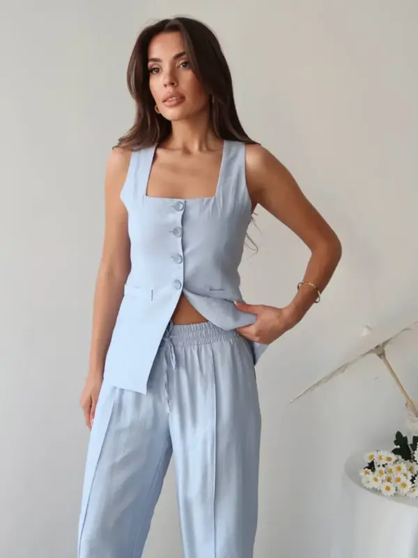 Elegantan komplet odijela sastoji se od prsluka i šalvara. Donji dio ima elastičnu gumu u struku za maksimalnu udobnost, a podstava na šalvarama duga je oko 30 cm.