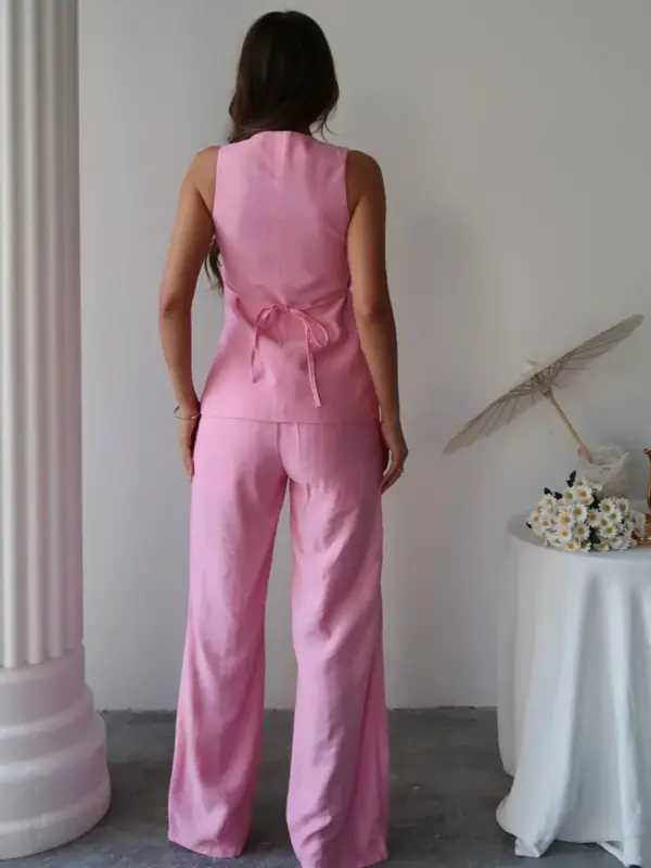 Prsluk se veže pozadi i kopča na dugmad, također je u potpunosti podstavljen.