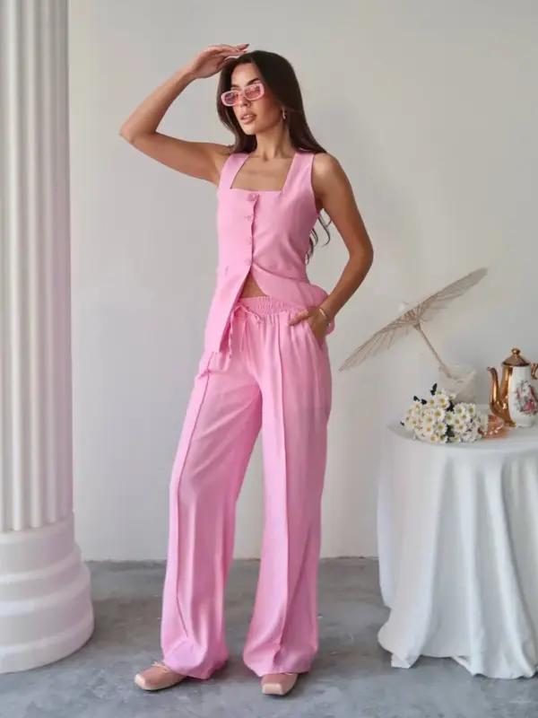 Elegantan komplet odijela sastoji se od prsluka i šalvara. Donji dio ima elastičnu gumu u struku za maksimalnu udobnost, a podstava na šalvarama duga je oko 30 cm.